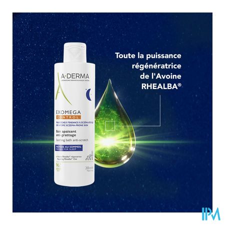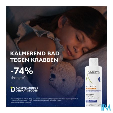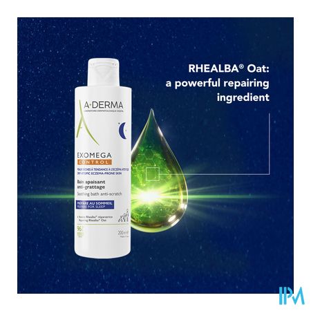 Met dit kalmerende badproduct staat A-DERMA, expert op het gebied van verzorging de droge huid met neiging tot atopie, in voor een gekalmeerde huid met een goede nachtrust als gevolg. Dit natuurlijke, kalmerende en anti-jeuk verzorgingsproduct hoort toegevoegd te worden aan het badwater, bij voorkeur 's avonds voor het slapengaan. Het kan ook aangebracht worden op de huid van pasgeborenen. Het verzacht de huid en kalmeert irritatie dankzij een combinatie van zachte en hydraterende actieve bestanddelen (Rhealba® haverplantextract, Filaxerine®, vitamine B3 en glycerine). Dit product kent geen schuimende noch reinigende werking. Het wordt gebruikt als aanvulling op de huidverzorgingsroutine, om de huid voor te bereiden op de verzorgingsproducten die hieropvolgend aangebracht worden. Na 7 dagen gebruik voorziet de natuurlijke formule 100% van de proefpersonen van een goede nachtrust¹ zonder jeukerige huid. Rhealba® haver, afkomstig uit de biologische landbouw. Vegan info : bevat geen ingrediënten van dierlijke oorsprong.