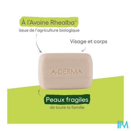 A-DERMA heeft deze reinigingsblok samengesteld met het oog op een verzorgingsproduct dat geschikt is voor het hele gezin. Het werd ontwikkeld om de fragiele, gevoelige of reactieve huid op milde wijze te reinigen en te kalmeren. De bio-afbreekbare reinigingsformule van deze zeepvrije dermatologische reinigingsblok respecteert de hydrolipidenlaag en de pH-waarde van de huid en is lief voor het milieu. Het Rhealba® haverplantextract met verzachtende en kalmerende eigenschappen is afkomstig uit de biologische landbouw en wordt lokaal in het zuidwesten van Frankrijk gekweekt. De DERMATOLOGICAL REINIGINGSBLOK bevat geen parfum en laat de huid grondig gereinigd, aangenaam zacht en gekalmeerd aanvoelen. Dit product is onmisbaar in de badkamer en wordt al meer dan 20 jaar door dermatologen aanbevolen. Rhealba® haver, afkomstig uit de biologische landbouw. Vegan info : bevat geen ingrediënten van dierlijke oorsprong.