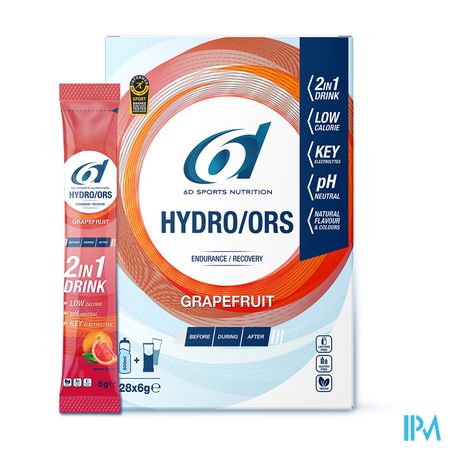 Tijdens het sporten verliest het lichaam vocht en elektrolyten via het zweet. Wanneer tijdens (duur)inspanningen, en al zeker bij warm weer, het zweetverlies onvoldoende wordt aangevuld, zal dit een negatief effect hebben op de prestatie, en mogelijk zelfs spierkrampen veroorzaken. De 6d HYDRO/ORS is een caloriearme elektrolytendrank die gebruikt word als bron van vocht en elektrolyten.