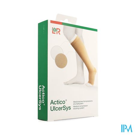Kurzzugverbände werden in der ersten akuten Behandlungsphase verwendet, während Actico UlcerSys in der akuten Phase nach Rückgang des Ödems und in der Erhaltungsphase über der behandelten Wunde verwendet werden kann.