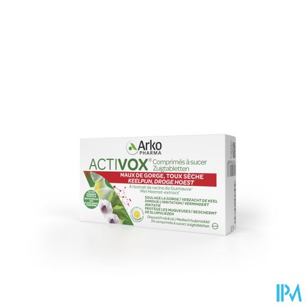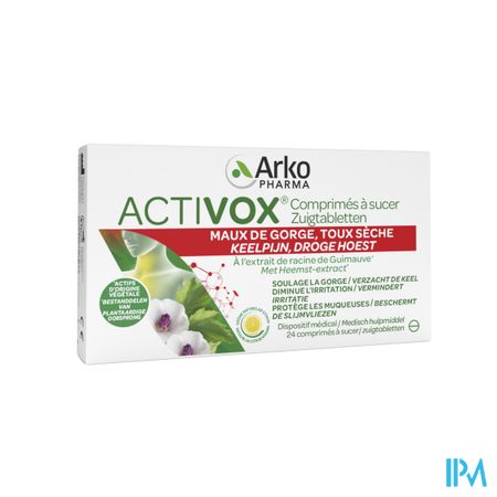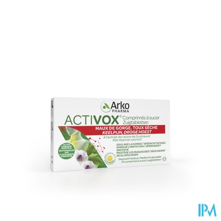 Activox Keelpijn Zuigtabletten 24 is een voedingssupplement, verkrijgbaar in uw buurtapotheek of online apotheek. Neem niet meer dan de aanbevolen dagelijkse dosis vermeld op de verpakking. Het vervangt geen gezonde levensstijl en gevarieerde en evenwichtige voeding. Vraag raad aan uw apotheker. Het product altijd buiten het bereik van kinderen houden.