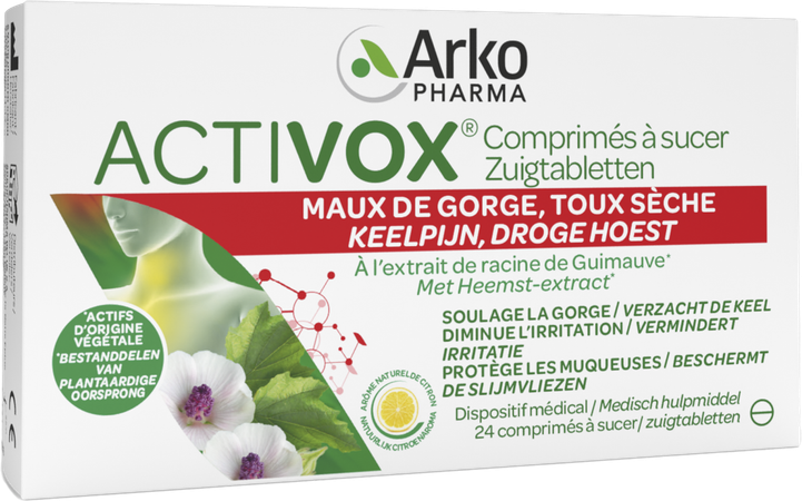 Activox® Zuigtabletten is een medisch hulpmiddel speciaal geformuleerd om om het slijmvlies te beschermen en keelpijn, droge hoest, irritatie of allergieën te verzachten.