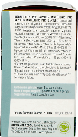 ADEK-posome is een bijzonder liposomaal complex. De liposomale vorm zorgt voor een optimale opname van de vitaminen A1, D2, E, K4 en bevat daarnaast ook magnesium om het fysiologische effect van de nutriënten te optimaliseren. Deze 4 vitamines werken synergetisch samen. Maar om deze synergiën efficiënt te laten plaatsvinden, is het noodzakelijk om een voldoende bijdrage van elk te garanderen. Vandaar is het interessant om te kiezen voor een oplossing die de vier combineert, in goede kwantiteit en in uitstekende kwaliteit en opneembaarheid! Zo kiest ADEK-posome van Nataos voor zuivere vormen en gebruikt het de actieve vorm van D3 en K2 boven de minder opneembare D2 en K1. Bovendien is er gekozen voor vitamine D3 uit korstmos en niet uit wolvet (lanoline), dus volledig vegan.