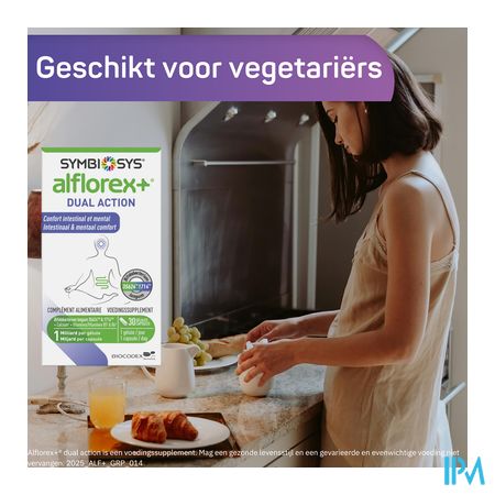 Alflorex+® dual action is alleen voor volwassenen. Geschikt voor vegetariërs en mensen die een FODMAP-dieet volgen.