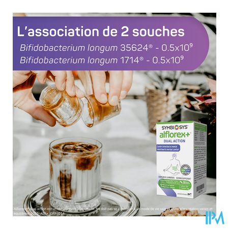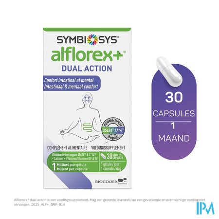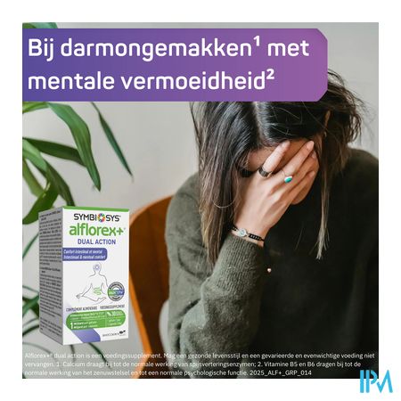 SYMBIOSYS® Alflorex+® dual action is de nieuwe formule van Biocodex, speciaal ontwikkeld voor patiënten met darmongemakken in combinatie met mentale vermoeidheid.