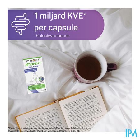 SYMBIOSYS® Alflorex+® dual action bevat alle benodigde actieve ingrediënten in slechts 1 capsule, om de dagelijkse inname voor de patiënt te vergemakkelijken.