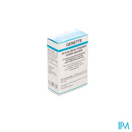 Door toevoeging van Alkalisch Poeder Genette aan het drinkwater verkrijgt men een drank waarvan de diëtische eigenschappen er toe bijdragen om het organisme van de duif vol komen fit te houden tijdens de prijsvluchten, het ruien en de winter periode.