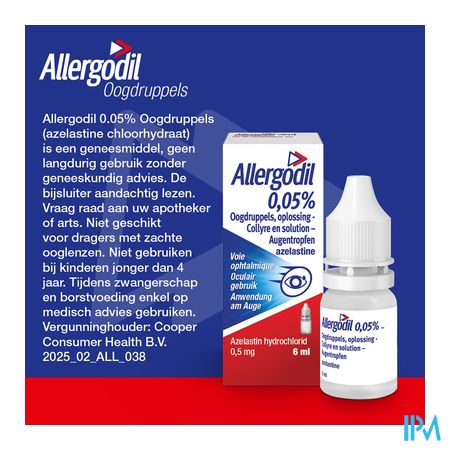 "ALLERGODIL 0,05% Oogdruppels bevat benzalkoniumchloride").