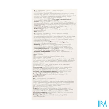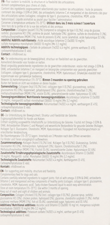Water, glucose-fructosestroop, gehydrolyseerd collageen (varkens) (11,2 %), methylsulfonylmethaan (MSM) (0,8 %), d-glucosaminesulfaat 2KCl (0,6 %), chondroïtinesulfaat (0,3 %), hyaluronzuur (0,11 %).