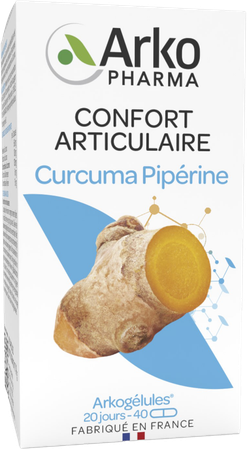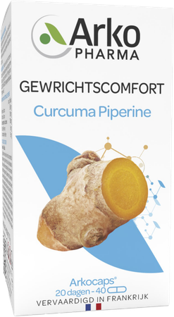 Arkocaps® Curcuma Piperine is een voedingssupplement. De wortelstok van Curcuma helpt de flexibiliteit en het comfort van de gewrichten te behouden. Zwarte peper, die piperine bevat, verhoogt de absorptie van Curcuma.
