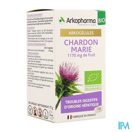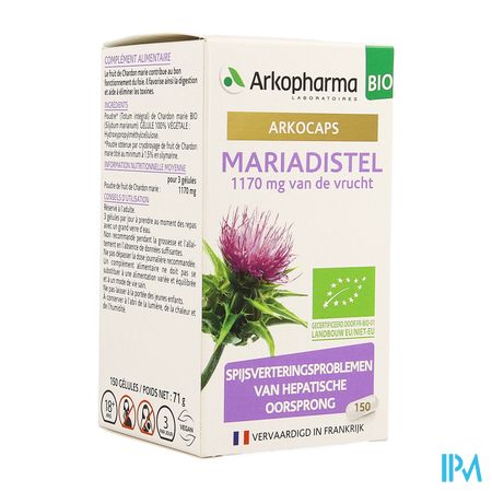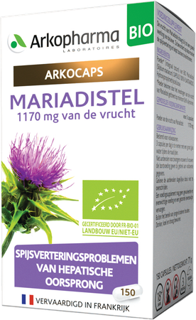 Arkocaps® Mariadistel is een voedingssupplement. De vrucht van Mariadistel draagt bij tot een goede werking van de lever. Ze bevordert op deze manier de spijsvertering en helpt toxines te elimineren.