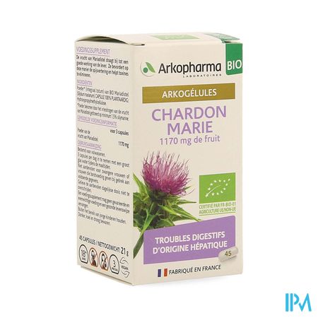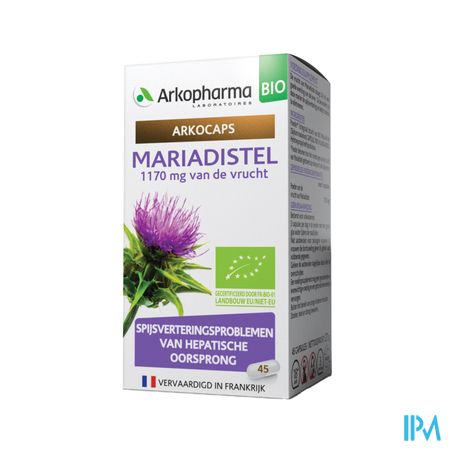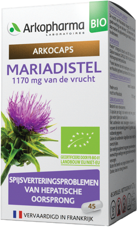 Arkocaps® Mariadistel is een voedingssupplement. De vrucht van Mariadistel draagt bij tot een goede werking van de lever. Ze bevordert op deze manier de spijsvertering en helpt toxines te elimineren.