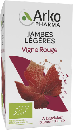 Arkocaps® Rode wijnstok is een voedingssupplement. Het blad van Rode wijnstok bevordert een goede circulatie et draagt zo bij om het gevoel van zware en vermoeide benen te verminderen.