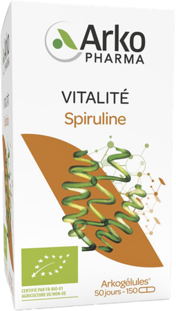 Arkocaps Spiruline Bio Caps 150 is een voedingssupplement, verkrijgbaar in uw buurtapotheek of online apotheek. Neem niet meer dan de aanbevolen dagelijkse dosis vermeld op de verpakking. Het vervangt geen gezonde levensstijl en gevarieerde en evenwichtige voeding. Vraag raad aan uw apotheker. Het product altijd buiten het bereik van kinderen houden.
