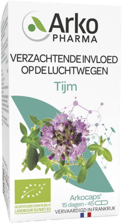 Arkocapsules® Tijm is een voedingssupplement, speciaal geformuleerd voor personen die een goed ademhalingscomfort wensen te behouden.