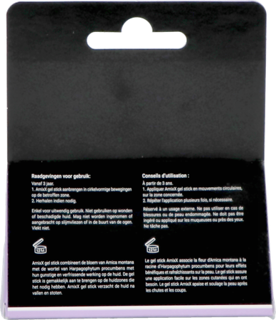 ArnixX gel stick combineert de bloemen van Arnica montana met de wortel van Harpagophytum procumbens met hun gunstige en verfrissende werking op de huid. De gel stick is gemakkelijk aan te brengen op de huidzones die het nodig hebben. ArnixX gel stick verzacht de huid na vallen en stoten.