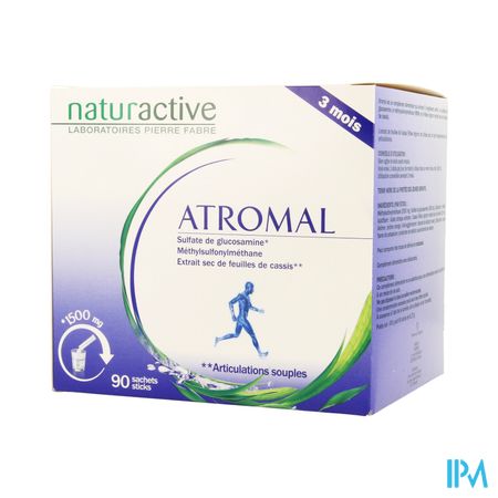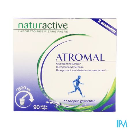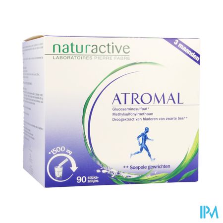 Glucosaminesulfaat is een structurele bouwsteen van het kraakbeen. Methylsulfonylmethaan (MSM) is een organische zwavelverbinding. Zwavel is een bestanddeel van verschillende proteïnen in ons lichaam. Het is vooral overvloedig aanwezig in de structuur van nagels, haar, huid en gewrichten. Het extract van zwarte-bessenbladeren (Ribes nigrum) wordt gebruikt voor het goed functioneren van de gewrichten. Atromal bevat de volgende drie complementaire actieve bestanddelen in een effectieve dagelijkse doses. Atromal is geen dopingproduct en kan door atleten worden gebruikt. Dit voedingssupplement is geen vervanging voor een gevarieerde en evenwichtige voeding en een gezonde levensstijl. Voedingssupplement met zoetstoffe