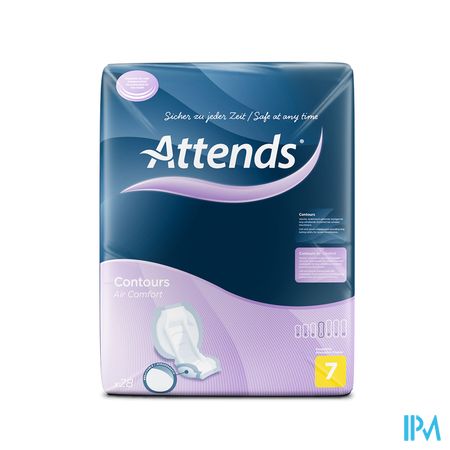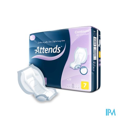 Attends Contours Air Comfort 7 zijn anatomisch gevormde inleggers geschikt voor zware urine- en/ of ontlastingsincontinentie. De inleggers zo gevormd dat ze een uitstekende en comfortabele aansluiting geven op het lichaam. De ademende, textielachtige buitenlaag zorgt voor extra comfort, discretie en een gezonde huid.