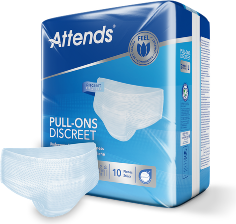 Attends Pull-Ons Discreet Underwear zijn discrete en comfortabele, absorberende broekjes ontworpen voor mannen en vrouwen met lichte tot matige urine-incontinentie.