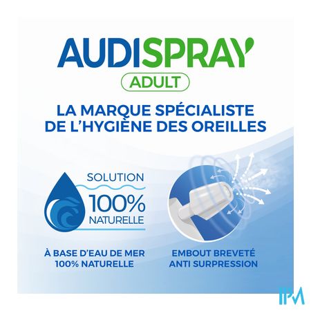 De Audispray-oplossing bestaat uit microbiologisch gecontroleerd zeewater en reinigt de oren doeltreffend en in zachtheid. Dankzij de gepatenteerde dop wordt het risico op overdruk beperkt.