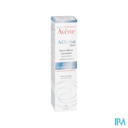 Dit serum bevat pro-vitaminen C en E (met anti-oxiderende en huidbeschermende eigenschappen) en GP4G (die de huidcellen een echte energieboost geven). Het zorgt voor een gladmakend effect, met een optimaal beschermde huid, minder zichtbare rimpels en lijntjes, en een frisse, verkwikte, stralende teint als resultaat. A-OXitive SERUM kent een huidbeschemende werking gelijkaardig aan die van 15% pure vitamine C*. Het huideigen verdedigingsmechanisme wordt kracht bijgezet en de huid wordt beter bescherm tegen oxidatieve stress veroorzaakt door schadelijke invloeden van buitenaf (vervuilende, milieu-verontreinigende deeltjes...). Deze lichte, vloebare textuur met niet-vettige finish is fris en subtiel geparfumeerd. Het is rijk aan Thermaal water van Avène, dat van nature kalmerend en verzachtend inwerkt op de huid. Het zorgt voor een 24-uur langdurige hydratie** , biedt een optimale huidtolerantie en is geschikt voor de gevoelige huid.