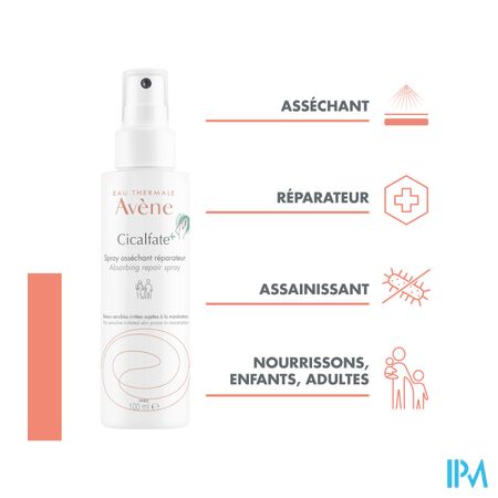 • UITDROGEND: Absorberende poeders drogen irritaties uit die vatbaar zijn voor maceratie op gezicht, lichaam en babybilletjes. • HERSTELT**: [C⁺-Restore]™, het eerste postbiotisch herstellend actief bestanddeel afkomstig van Thermaal water van Avène, bevordert het herstel van de opperhuid. • ZUIVERT: Koper- en zinksulfaten beperken het risico van bacteriële proliferatie.