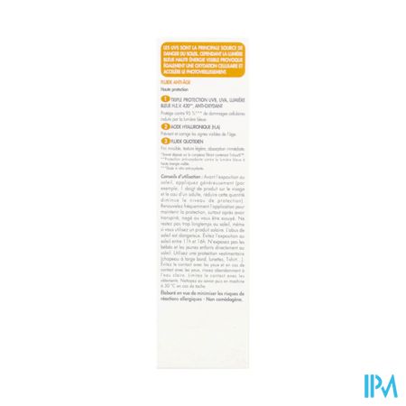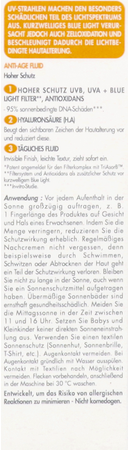 De Vloeibare anti-aging crème SPF50 biedt een hoge dagelijkse bescherming tegen uv B-, uv A-stralen en HEV blauw licht om foto-geïnduceerde huidveroudering te voorkomen.
