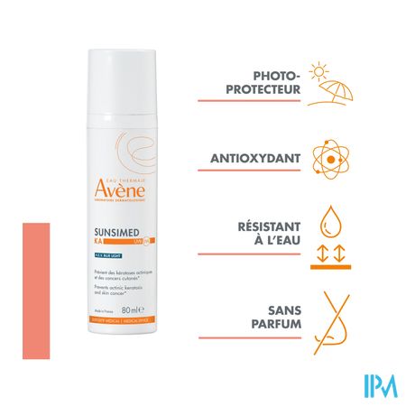 Sunsimed KA is een medisch hulpmiddel met een zeer hoge beschermingsfactor SPF50+ dat kankerletsels (met uitzondering van melanomen), precancereuze letsels zoals actinische keratose en foto-geïnduceerde DNA-beschadiging helpt te voorkomen. Sunsimed KA is geformuleerd met: - TriAsorB, onze 1e biologische zonnefilter die beschermt tegen UVB, UVA en blauw licht, - Pretocoferyl, een krachtig antioxiderend actief bestanddeel, - Hyaluronzuur: een krachtige hydraterende werkstof. Dit product is bijzonder geschikt voor de gevoelige huid die een verhoogd risico loopt wanneer ze worden blootgesteld aan de zon. Dankzij de vloeibare textuur en de flacon met pompje kan het product steeds opnieuw makkelijk en precies worden aangebracht, en dan vooral op de schedel.