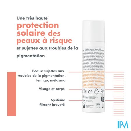 Zeer hoge bescherming voor de gevoelige huid die vatbaar is voor pigmentstoornissen, lentigo en melasma.