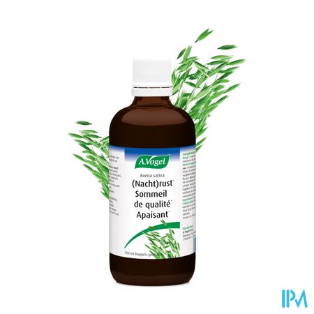 A.vogel Avena Sativa Nachtrust Druppels 100ml is een voedingssupplement, verkrijgbaar in uw buurtapotheek of online apotheek. Neem niet meer dan de aanbevolen dagelijkse dosis vermeld op de verpakking. Het vervangt geen gezonde levensstijl en gevarieerde en evenwichtige voeding. Vraag raad aan uw apotheker. Het product altijd buiten het bereik van kinderen houden.