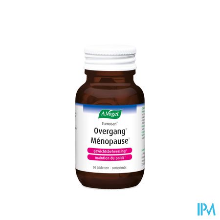 A.vogel Famosan Overgang Gewichtsbeheers.tabl 60 is een voedingssupplement, verkrijgbaar in uw buurtapotheek of online apotheek. Neem niet meer dan de aanbevolen dagelijkse dosis vermeld op de verpakking. Het vervangt geen gezonde levensstijl en gevarieerde en evenwichtige voeding. Vraag raad aan uw apotheker. Het product altijd buiten het bereik van kinderen houden.