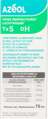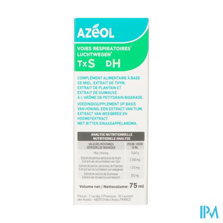 Azeol Sirop Dh 75ml is een voedingssupplement, verkrijgbaar in uw buurtapotheek of online apotheek. Neem niet meer dan de aanbevolen dagelijkse dosis vermeld op de verpakking. Het vervangt geen gezonde levensstijl en gevarieerde en evenwichtige voeding. Vraag raad aan uw apotheker. Het product altijd buiten het bereik van kinderen houden.
