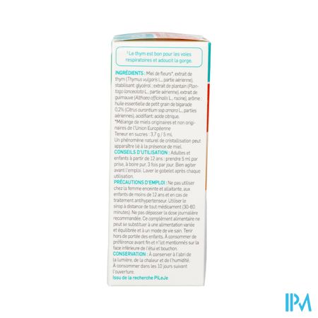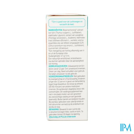 Voedingssupplement op basis van honing, tijm extract, weegbree-extract en heemstextract van de wortels met het aroma van petitgrain bigarade.