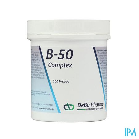 B-50 Complex Caps 100 Deba is een voedingssupplement, verkrijgbaar in uw buurtapotheek of online apotheek. Neem niet meer dan de aanbevolen dagelijkse dosis vermeld op de verpakking. Het vervangt geen gezonde levensstijl en gevarieerde en evenwichtige voeding. Vraag raad aan uw apotheker. Het product altijd buiten het bereik van kinderen houden.