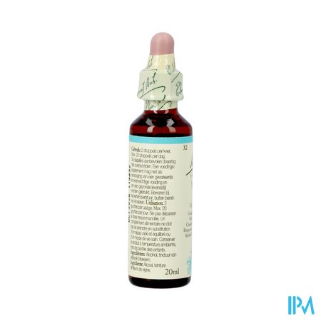 De originele formule volgens Dr. Edward Bach. Dit is een voedingssupplement-kruidenpreparaat. Een voedingssupplement mag niet als vervanging van een gevarieerde en evenwichtige voeding en van een gezonde levensstijl worden gebruikt. Bewaren bij kamertemperatuur, buiten bereik van kinderen.