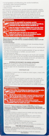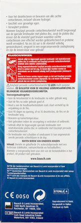 - Zet de contactlenzen NOOIT in als ze korter dan 6 uur in EasySept peroxide contactlensvloeistof hebben gestaan. Als niet geneutraliseerde EasySept peroxide contactlensvloeistof in uw ogen komt, verwijder dan onmiddelijk uw lenzen en spoel uw ogen uit met stromend water.