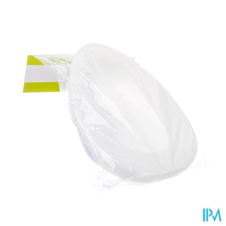 Eenvoudige bedpan voor algemeen gebruik in witte kunststof. De rand buigt sterk naar binnen om morsen tijdens het transport te vermijden.