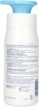 Bepanthen Derma Herstellende Body Lotion vermindert zichtbaar schilferige, ruwe en droge huid. Verzacht direct en kalmeert jeukende, droge huid. De unieke samenstelling biedt langdurige hydratatie en bescherming tegen uitdroging. Het speciale Herstelcomplex dat de huid helpt te herstellen om terugkerende droge huid te voorkomen is een unieke samenstelling met zorgvuldig en specifiek geselecteerde ingrediënten.