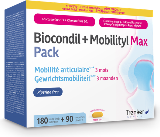 Het Duopack Biocondil + Mobilityl Max bevat twee voedingssupplementen in één verpakking en is een complete aanpack beweeglijkheid van de gewrichten1.