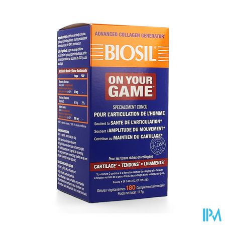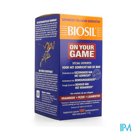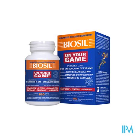 Biosil On Your Game Caps 180 is een voedingssupplement, verkrijgbaar in uw buurtapotheek of online apotheek. Neem niet meer dan de aanbevolen dagelijkse dosis vermeld op de verpakking. Het vervangt geen gezonde levensstijl en gevarieerde en evenwichtige voeding. Vraag raad aan uw apotheker. Het product altijd buiten het bereik van kinderen houden.