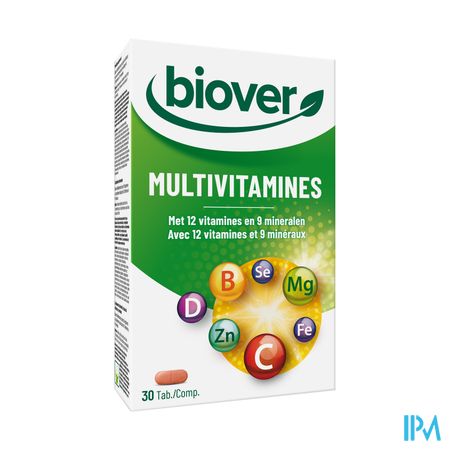 Biover Multivitamine Comp 30 is een voedingssupplement, verkrijgbaar in uw buurtapotheek of online apotheek. Neem niet meer dan de aanbevolen dagelijkse dosis vermeld op de verpakking. Het vervangt geen gezonde levensstijl en gevarieerde en evenwichtige voeding. Vraag raad aan uw apotheker. Het product altijd buiten het bereik van kinderen houden.