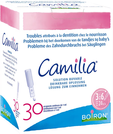 Homeopathisch geneesmiddel dat bestanddelen bevat die traditioneel gebruikt worden bij problemen die voorkomen bij het doorkomen van de tandjes bij baby's.