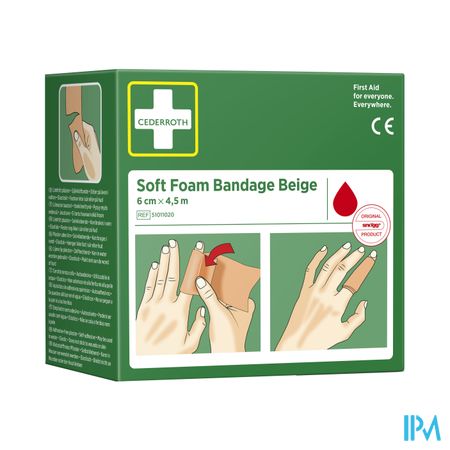 Cederroth Soft Foam Bandage Beige 4,5 m fungeert zowel als pleister als verband en is geschikt voor kleinere wonden. Gemakkelijk aan te brengen op vingers, handen, armen, tenen, voeten en benen enzovoort. Het verband is geschikt voor alle typen kleine wonden onafhankelijk van warmte, koude, natheid of droogte en blijft zitten, zelfs in water.