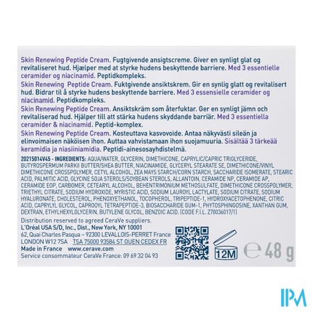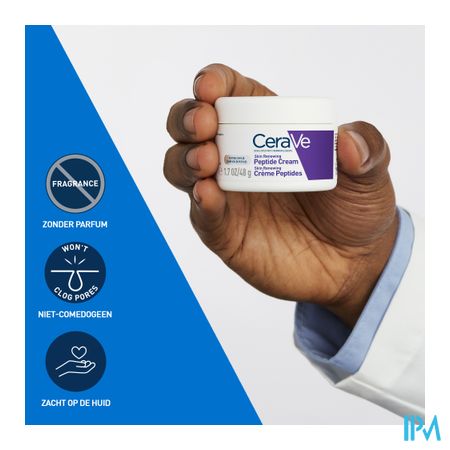 • CeraVe Skin Renewing Peptide Crème is niet-comedogeen en geschikt voor de gevoelige huid. De lichte textuur zonder parfum voelt comfortabel aan en trekt snel in.