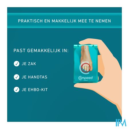- Ultradunne en afgeschuinde randen zodat de Compeed® Blarenpleister met elke beweging meebuigt en enkele dagen blijft zitten.