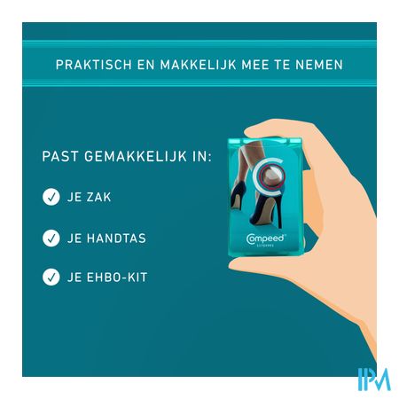 Heb je nog geen blaren en wil je zeker zijn dat je zorgeloos de dag doorkomt? Gebruik dan een Compeed® pleister zodra je ergens irritatie of wrijving voelt of zelfs vooraf. De Compeed® pleister voor hoge hakken is uitermate geschikt om vooraf aan te brengen, voor je vertrekt. Zo ben je een hele dag beschermd en kan je genieten van je mooie schoenen. Bovendien is de Compeed® pleister voor hoge hakken zo goed als onzichtbaar in elk type schoen, dankzij zijn unieke vlindervormige ontwerp.