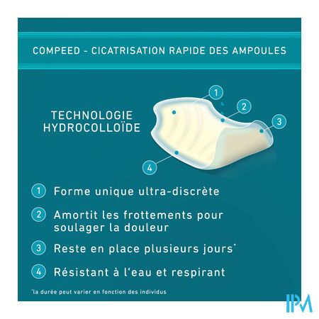 - Ultradunne en afgeschuinde randen zodat de Compeed® Blarenpleister met elke beweging meebuigt en enkele dagen blijft zitten.