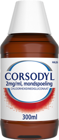 Wanneer mag u dit middel niet gebruiken? • U bent allergisch voor chloorhexidinedigluconaat of een van de stoffen die in dit geneesmiddel zitten. Wanneer moet u extra voorzichtig zijn met dit middel? Neem contact op met uw arts of apotheker voordat u dit middel gebruikt. • Gebruik dit middel alleen in de mond. • Vermijd elk contact van Corsodyl met de ogen en oren. Als de oplossing toch in contact komt met de ogen, spoel dan onmiddellijk en overvloedig met water. • Langdurig gebruik moet zo mogelijk vermeden worden. Corsodyl mag niet worden ingeslikt. Als u last krijgt van pijn, zwelling of irritatie in de mond, moet u stoppen met het gebruik van het product en een arts of apotheker raadplegen