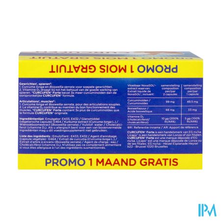 Curcufen Forte Pro Caps 90 + Caps 30 is een voedingssupplement, verkrijgbaar in uw buurtapotheek of online apotheek. Neem niet meer dan de aanbevolen dagelijkse dosis vermeld op de verpakking. Het vervangt geen gezonde levensstijl en gevarieerde en evenwichtige voeding. Vraag raad aan uw apotheker. Het product altijd buiten het bereik van kinderen houden.