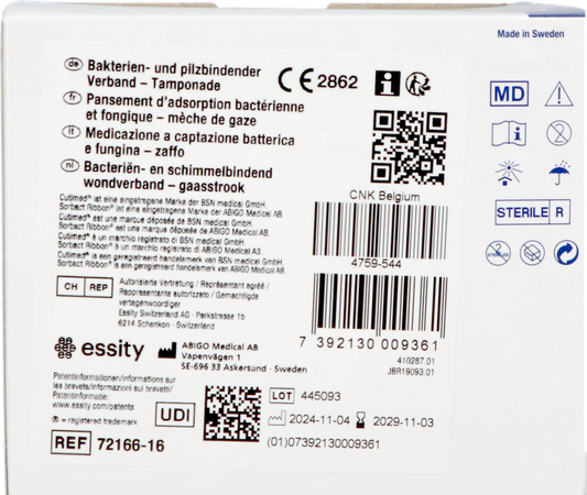 Cutimed® Sorbact Ribbon® is een bacteriën- en schimmelbindend gaasverband met DACC™-coating, gebaseerd op Sorbact® Technology. Cutimed® Sorbact Ribbon® voorkomt en behandelt wondinfecties en vergemakkelijkt het wondgenezingsproces. Het is geschikt als wondvulling en laat wondexsudaat door naar een secundair verband. Cutimed® Sorbact Ribbon® kan ook in huidplooien worden aangebracht om schimmelinfecties (intertrigo) te behandelen.